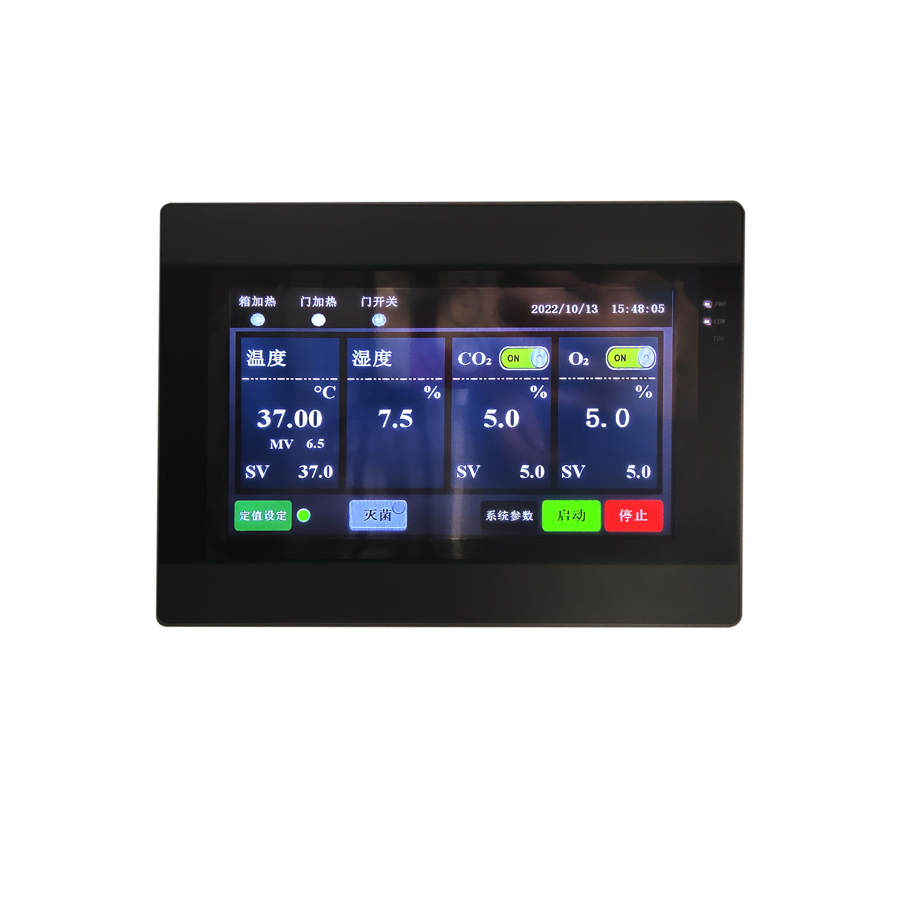 控制器 | 新一代大屏真彩色觸摸屏電腦控制器,溫度、O2濃度、CO2濃度、濕度同時(shí)顯示 |