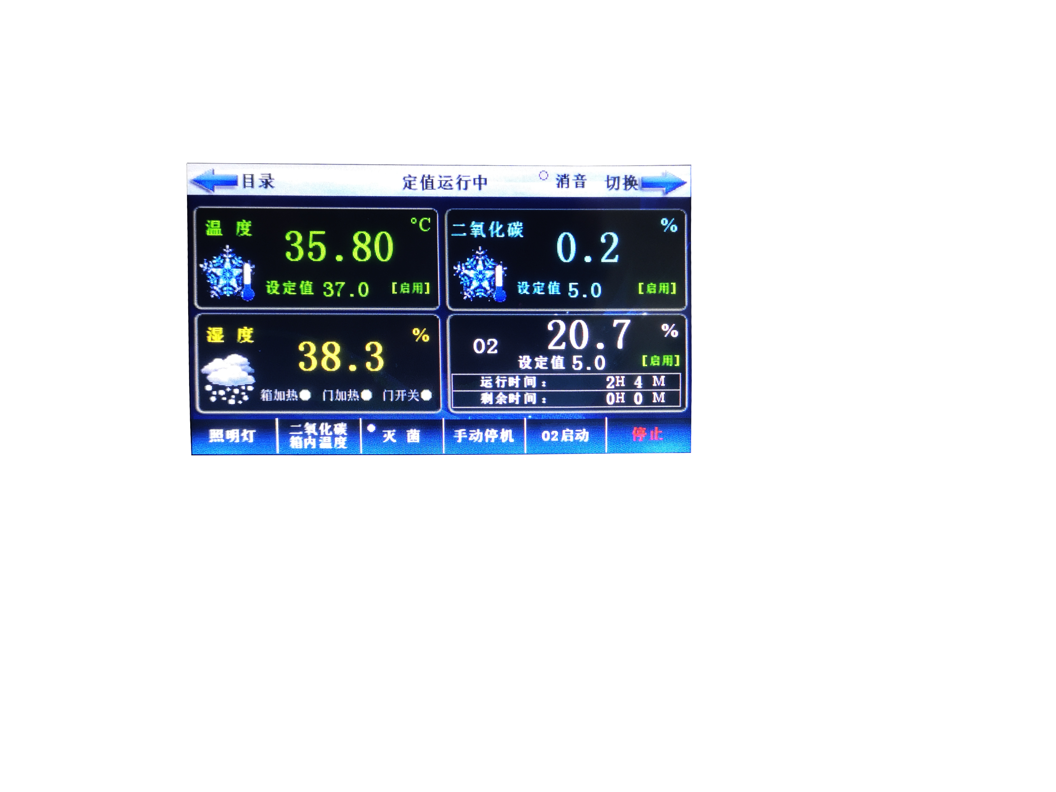 控制器 | 新一代大屏真彩色觸摸屏電腦控制器,溫度、O2濃度、CO2濃度、濕度同時顯示 |