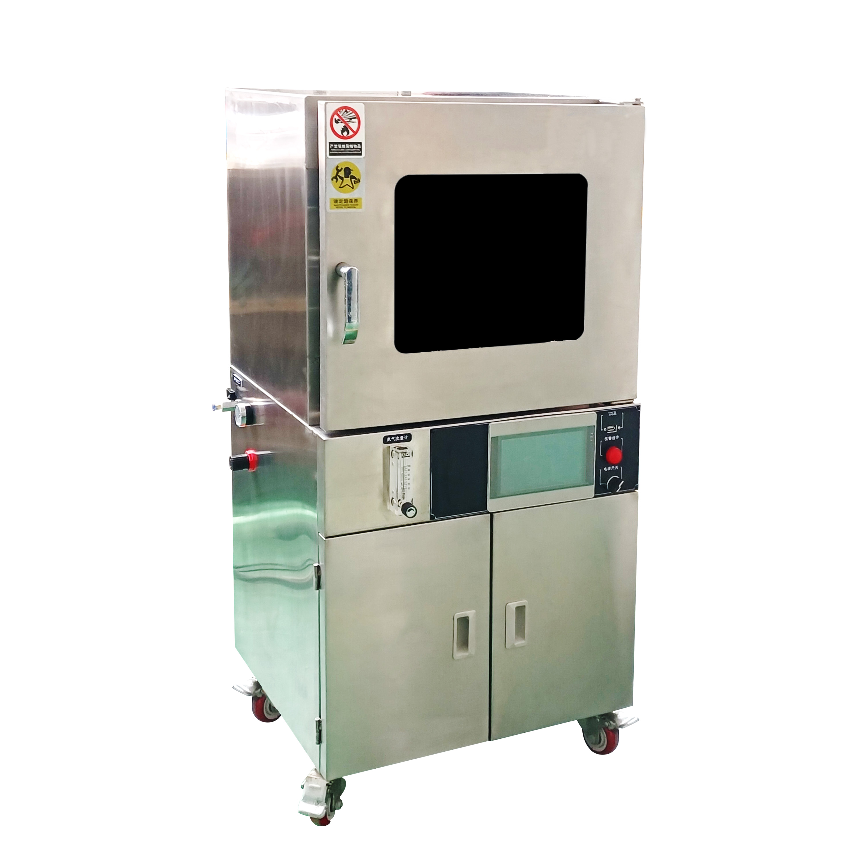 2. 工作室與玻璃門之間裝有一次性澆注成形耐高溫硅橡膠門封條有效密封,以保證箱內達到較高的真空度。